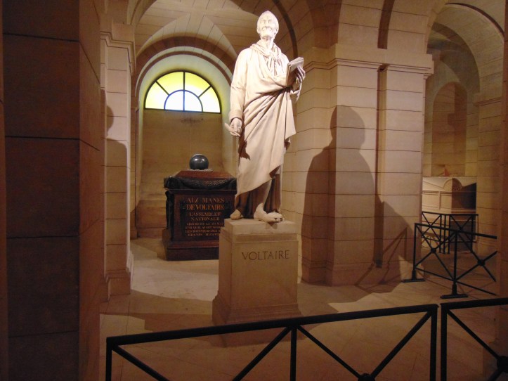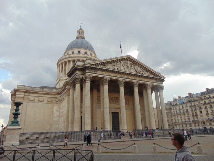 Girişte kocaman harflerle “aux grands hommes la patrie reconnaissante”  yazıyor,  yani “anavatan büyük insanlara minnettar”. Fransız Devrimi’nin üçüncü yılında, Ulusal Meclis’in 4 Nisan 1791 tarihli yasasıyla ülkeye büyük hizmetlerde bulunduğu kabul edilen kişilerin tabutlarının yerleştirildiği bir ”vatan tapınağı”na dönüştürülmüş Pantheon;   bilime, felsefeye, edebiyata verilen önemin muhteşem bir kanıtı. (Bir de kendimizi düşündüm sonra, bir garip hüzün doldu kalbime)
