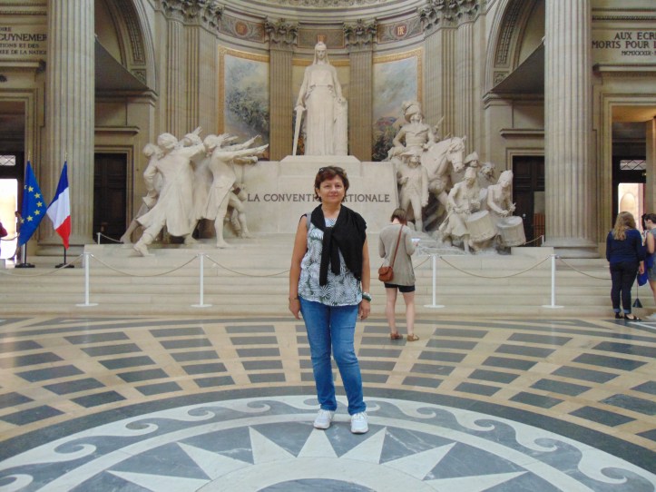Girişte kocaman harflerle “aux grands hommes la patrie reconnaissante”  yazıyor,  yani “anavatan büyük insanlara minnettar”. Fransız Devrimi’nin üçüncü yılında, Ulusal Meclis’in 4 Nisan 1791 tarihli yasasıyla ülkeye büyük hizmetlerde bulunduğu kabul edilen kişilerin tabutlarının yerleştirildiği bir ”vatan tapınağı”na dönüştürülmüş Pantheon;   bilime, felsefeye, edebiyata verilen önemin muhteşem bir kanıtı. (Bir de kendimizi düşündüm sonra, bir garip hüzün doldu kalbime)