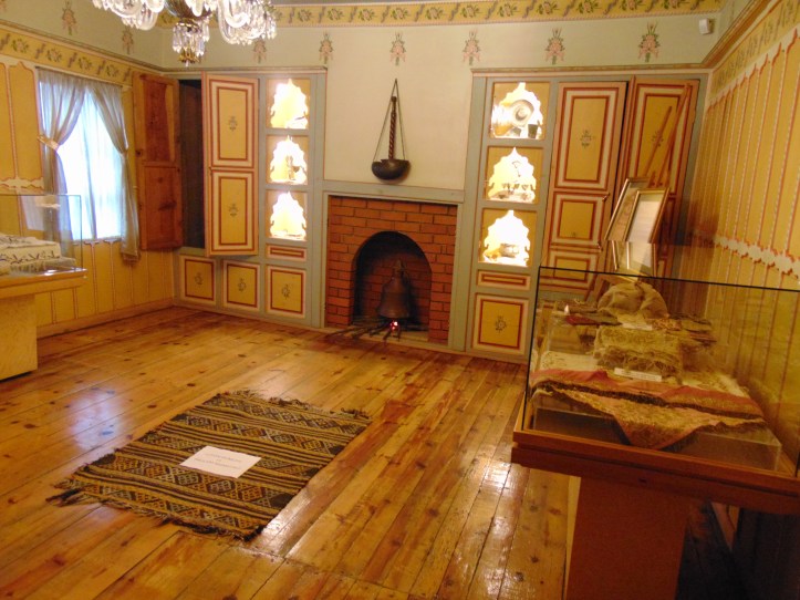 Müzenin giriş katında  idarî birimler bulunuyor.  Üst katlar ise geleneksel yaşam odalarına ayrılmış. Halılar, kilimler, dokumalar, takı eşyaları, kıyafetler sergileniyor burada. Dokuma tezgahı, savaş araç ve gereçleri, cilt kapakları da sergilenen diğer eşyalar arasında. Tüm duvarlar ve iç bölmeleri ahşap olan bu katlarda ahşap oymacılığı ve duvar boyamacılığı göz dolduruyor. Konakta en çok dikkatimi çeken, bütün köşe odalar ve sofalarıyla  bir zamanlar burada yaşayan konak sakinleri için ayrılan yaşam alanlarının eşitlikçi bir anlayışla düzenlenmiş olmasıydı. Zemin katta sergilenen hak tavası da bu yaklaşımın somut bir göstergesiydi.
