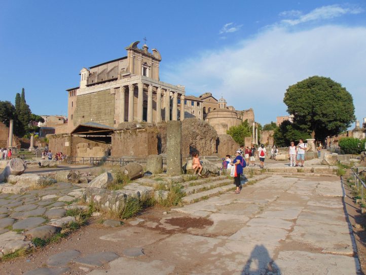 Palatino Tepesi ve Kolezyum’dan sonraki durağımız Roma Forumu idi. Artık sadece kalıntılarını gördüğümüz tapınaklar, kemerli sütunlar, bazilikalar, zafer taklarının yer aldığı Forum, geniş bir bölgeyi kaplıyor. Aktif olarak kullanıldığı bin yıl boyunca burası siyasî ve ticarî hayatın merkezi olmuş. Dünyanın en eski yolu üzerinden yürüyerek ulaştığımız Sezar’ın mezarı da Forum’un içinde.