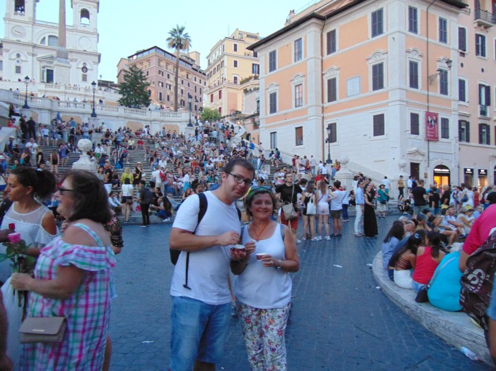Roma’ya kadar gelip İspanyol Merdivenlerine gitmemek olmazdı. İki kez gittik hem de. İki gidişimizde de çok kalabalıktı. Çünkü tüm turistlerin uğrak noktası burası. Merdivenlerin çok yakınında çok ünlü bir dondurmacı da var. Adı Pompi. Gerçekten de methettikleri kadar varmış. Sadece dondurması değil tiramisusu da şahaneydi. Aslında İspanyol Merdivenlerine ikinci gidişimiz daha çok dondurma ve tiramisu içindi. Merdivenlerde bir şey yenilip içilmesine izin verilmiyor. Sadece oturup meydanı izliyorsunuz. Meydan çok hareketli ve sokak şarkıcılarının da uğrak yeri.