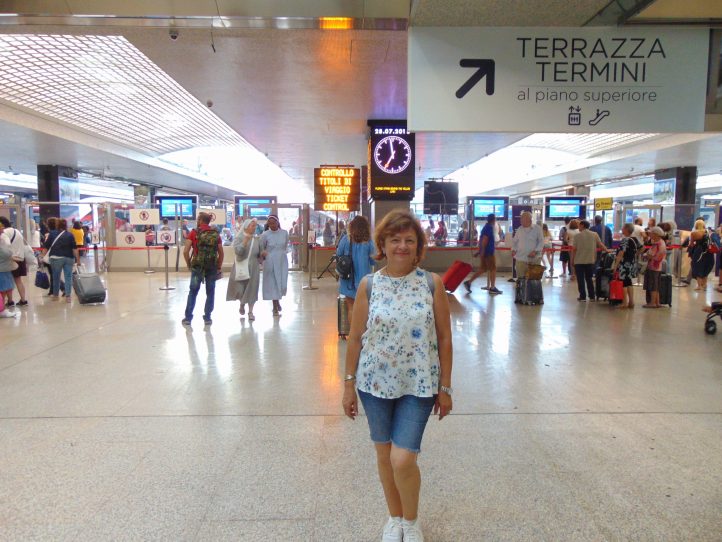Roma’da ilk durağımız Termini İstasyonu oldu. İstasyon için, Roma’ya çıkan bütün yolların kesiştiği yer denebilir. Çok büyük ve düzenli. Şehrin birçok yerine giden metro ve otobüslerin başlangıç noktası aynı zamanda. İstasyonun gece geç saatlerde tekin olmadığı söyleniyor. Roma’da kaldığımız üç gün boyunca en çok uğradığımız yer burasıydı. Otelimiz, istasyonun hemen bitişiğindeydi ve tarihi bir binaydı.