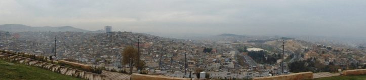 Balıklıgöl ziyaretlerimizin ardından Urfa Kalesi’ne çıkan merdivenlere yöneldik. Merdivenler boyunca masalar sandalyeler dizilmiş, belli ki Urfalılar, güzel havalarda Urfa manzarasının keyfini çıkarıyorlar. Bir de artık ticarî mekanlar haline gelmiş Büyük Mağara ve Çift Mağara’nın içine girip birkaç fotoğraf çekmeden edemedik. Merdivenlerin sonunda bizi sapsarı mezar taşlarıyla şehir kabristanı karşıladı.