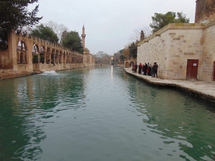 Aynzeliha Gölü: Balıklıgöl’ün hemen bitişiğinde, Urfa Kalesi’nin dibinde yer alan Aynzeliha Gölü biraz daha küçük. Çevresinde çay bahçeleri bulunuyor. Bizde bu çay bahçelerinden birinde çay içtik, Kazancı Bedih’in türküleri eşlik etti buradaki anlara. Bu gölün oluşumuyla da ilgili bir rivayet var elbet. Hz İbrahim ateşe atılacağı zaman, Nemrut’un kızı Zeliha, Hz. İbrahim’in dinine iman ettiğini söyler; bunun üzerine babası tarafından ateşe atılınca Zeliha’nın yanarak can verdiği bu yerde bir göl oluşur. Bu göle “Zeliha Gölü veya Pınarı” anlamında Aynzeliha denir. Başka bir rivayette ise bu gölün Zeliha’nın gözyaşlarından oluştuğu anlatılır.