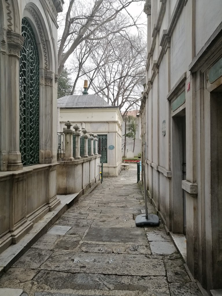 “Galata Sarayı Enderun Mektebi” yani bugünkü adıyla söylersek Galatasaray Lisesi ile birlikte Beyoğlu’ndaki iki önemli Osmanlı eserinden biri olan Galata Mevlevihanesi, İstanbul’un en eski mevlevihanesi. Her pazar sema gösterilerinin gerçekleştiği Mevlevihane’de Divan edebiyatına ait eserler de sergileniyor. Günlerden pazartesi olduğu için içeriye girmek mümkün değil. Kilitli kapısından içeriye bakmakla yetiniyoruz. Tam karşımızda divan şiirinin son büyük şairi Şeyh Galip’in kabri… Yani bizi buraya ulaştıran caddeye adını veren Şeyh Galip Dede, durun biraz der gibi…