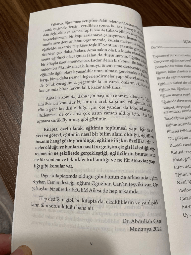 “Herkes İçin Kısa, Kolay Eğitim”, muhterem eşimin son kitabı… Mayıs 2025’te ikinci baskısını yapan bu kitaptan sonra başka bir kitap yazar mı bilmem, en azından şu anda niyeti ve isteği olmadığını söyleyebilirim. Keşke yazsa… İşte benim yazmamın sebebi de, bu kitabın onun yazdığı son kitap olması… O, artık kitap yazmayı bıraktı. Rekabeti de… Nasılsın diye soranlara da “Yumarlanıp gidiyorum “ demesi belki de bu yüzden…