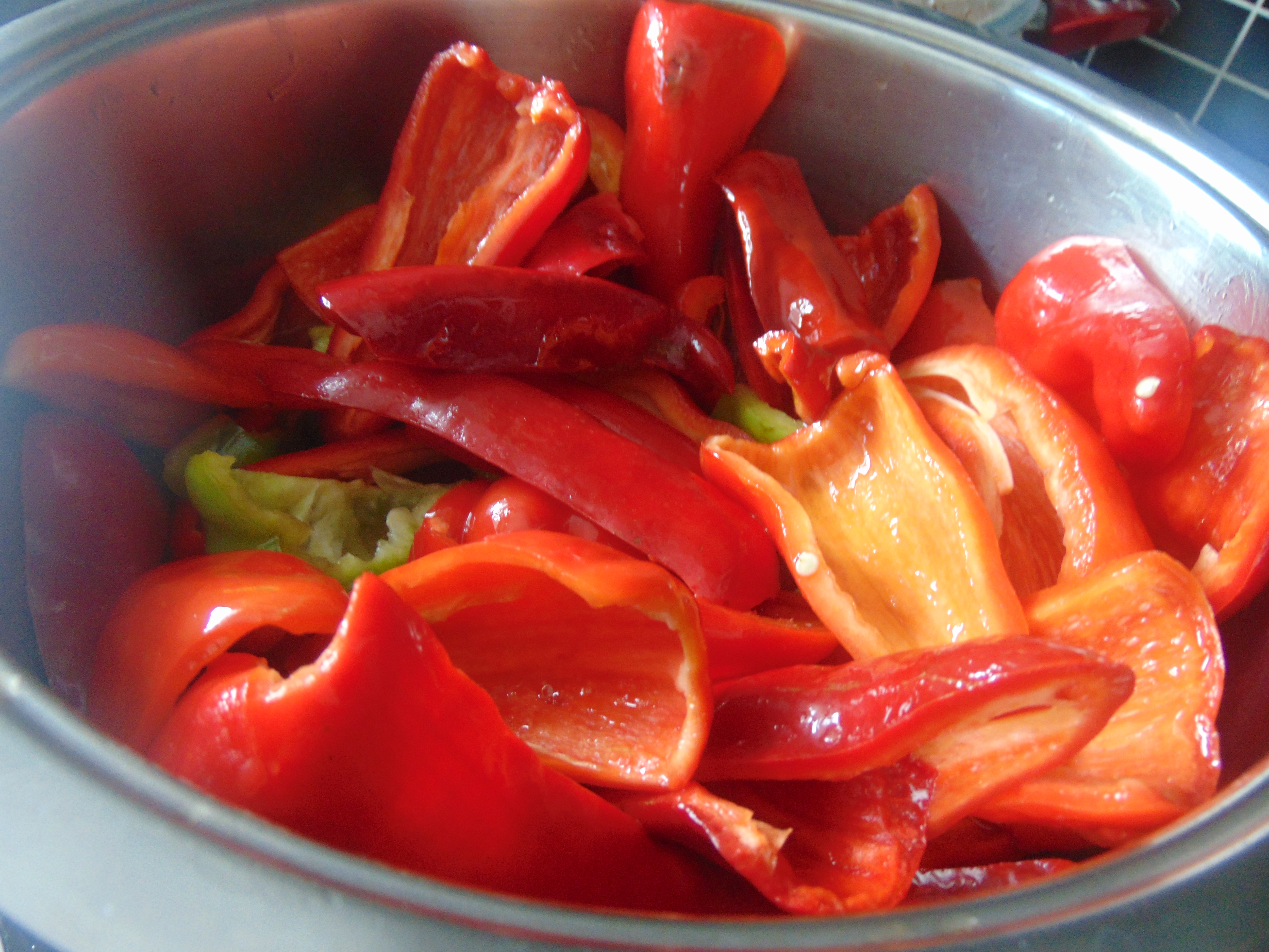 - Çekirdek yatakları alınmış kırmızı biberler kaynayan sirkeli yağa atılır.