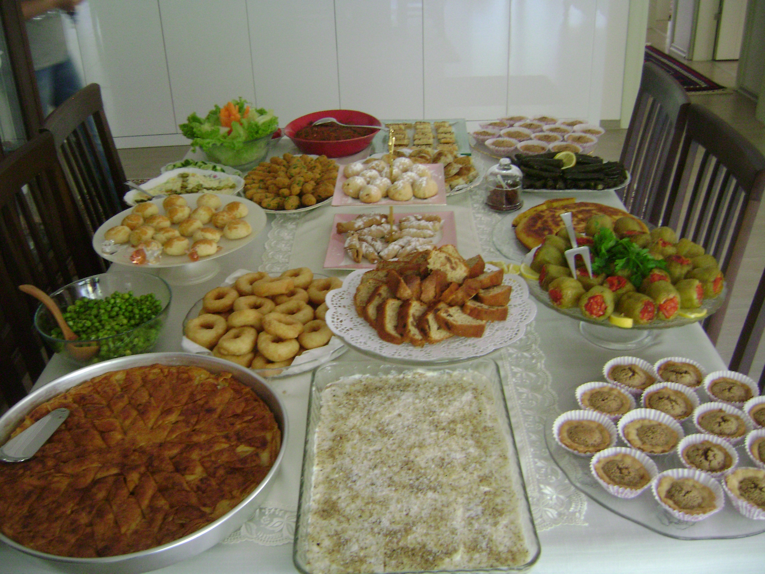 Yirmi kişilik bir grup için hazırladım bu masayı. Yaprak sarması, fırınlanmış biber dolması, mercimek köftesi (çok severim), elmalı kurabiye, prenses tatlısı, kısır (farklı bir tarifle), gödek (Çan’da çok yapılır, bu kez kayınvalidem yaptı sağ olsun, benim için nostaljik tatlardan biri), mısır ekmeği, patates salatası (Yıllardır yaparım, okuldan arkadaşlarla yaptığımız günlerin vazgeçilmeziydi.), pandispanya hamurundan kek (bu kek de benim klasiklerimdendir, içine hiç yağ konulmuyor, çok hafif. Her zaman da yüzümü ağartır.), sepet kurabiye, bezelye salatası (minik misafirlerimiz pek sevdi, anneleri de tarifi aldı tabii), tuzlu kraker ve özellikle oğlum için yaptığım, misafirlerimize de ikram ettiğimiz baklava. Hepsi bu kadar.
