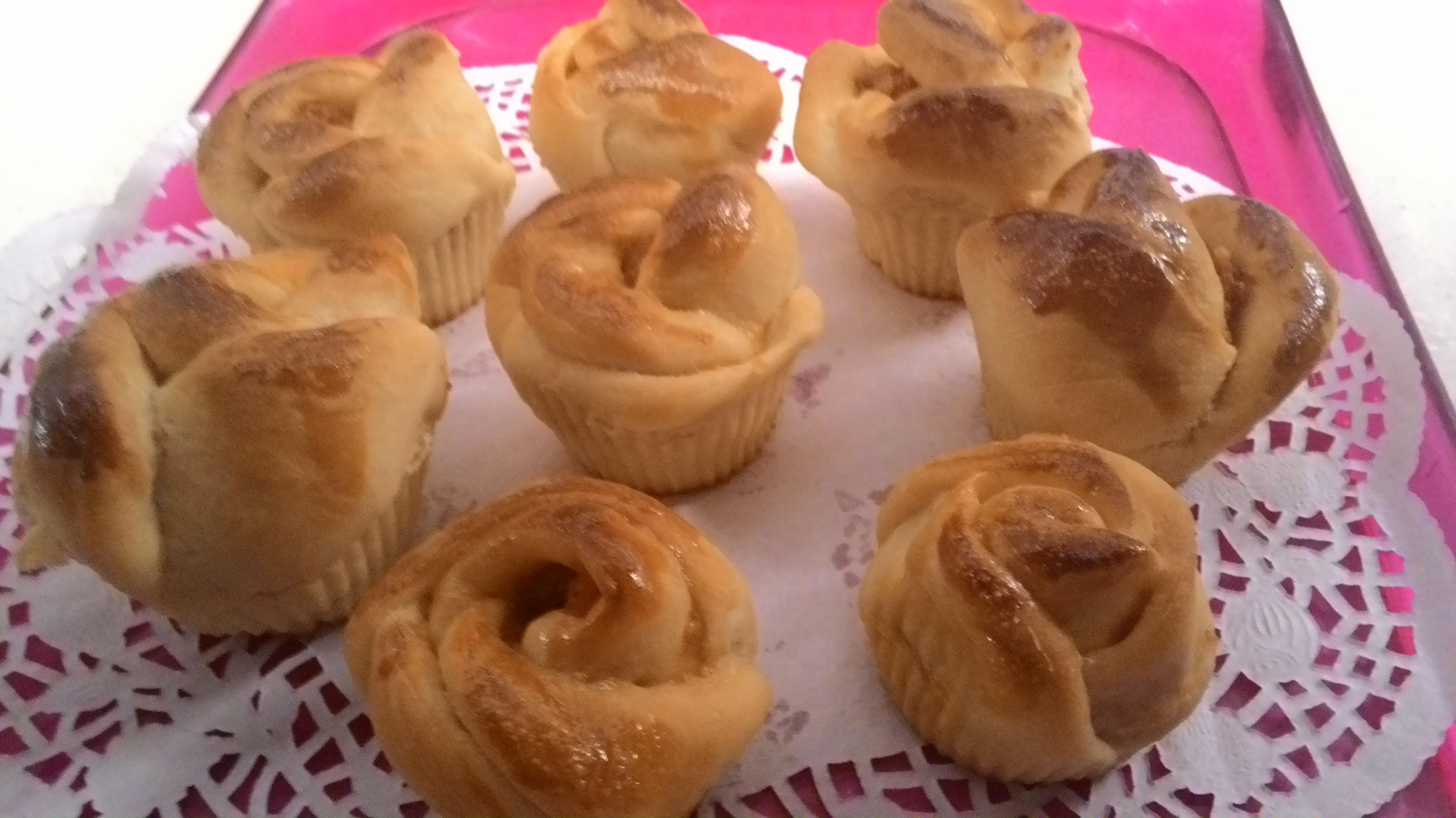 - Kestiğiniz 4 daireyi resimdeki gibi uçları üst üste gelecek şekilde yerleştirin üzerine patatesli harçtan koyun rulo yapıp muffin kalıplarına yerleştirin.