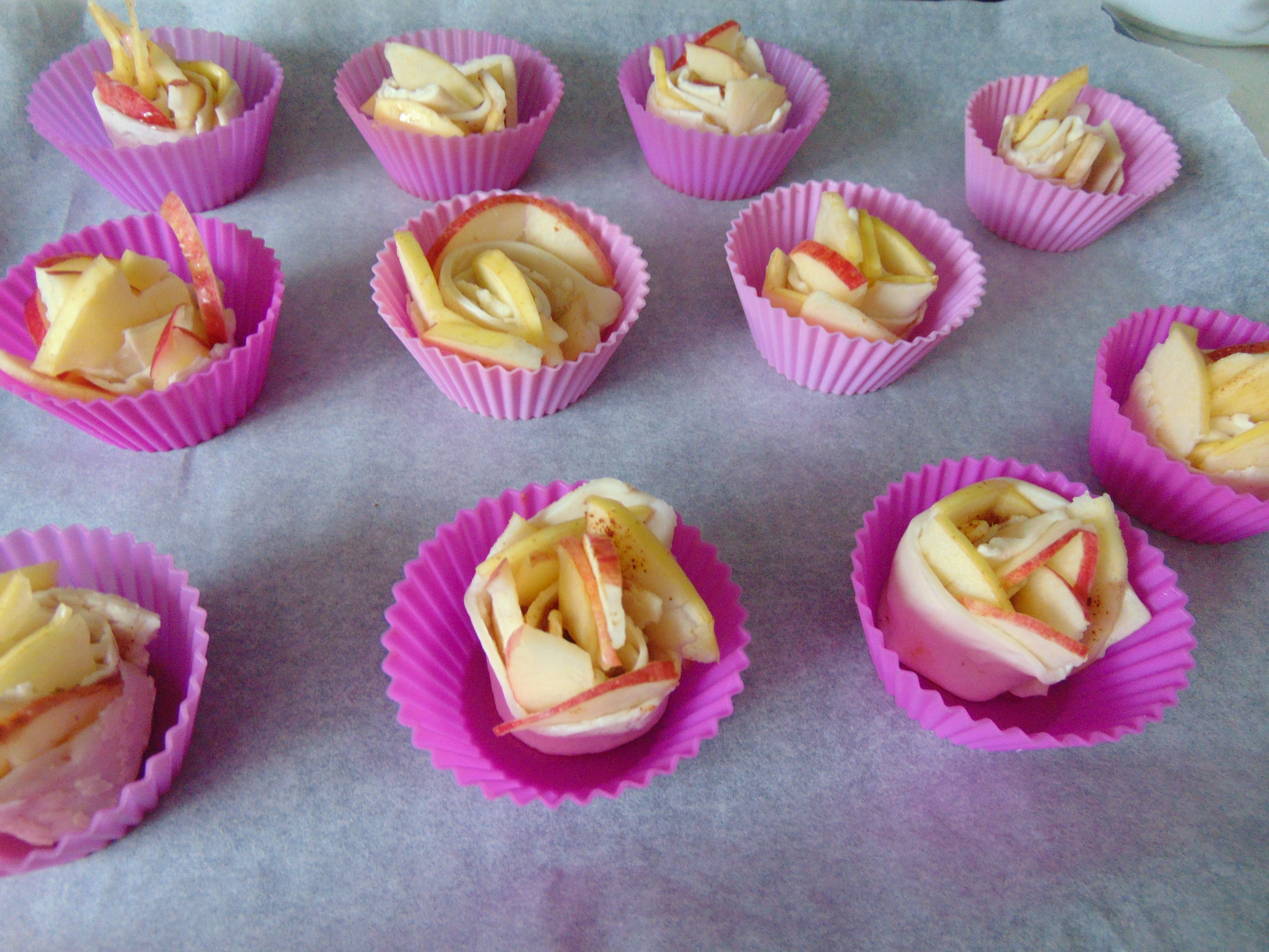 5) Gül şekli verilen milföy hamurları muffin kalıplarına yerleştirilir.